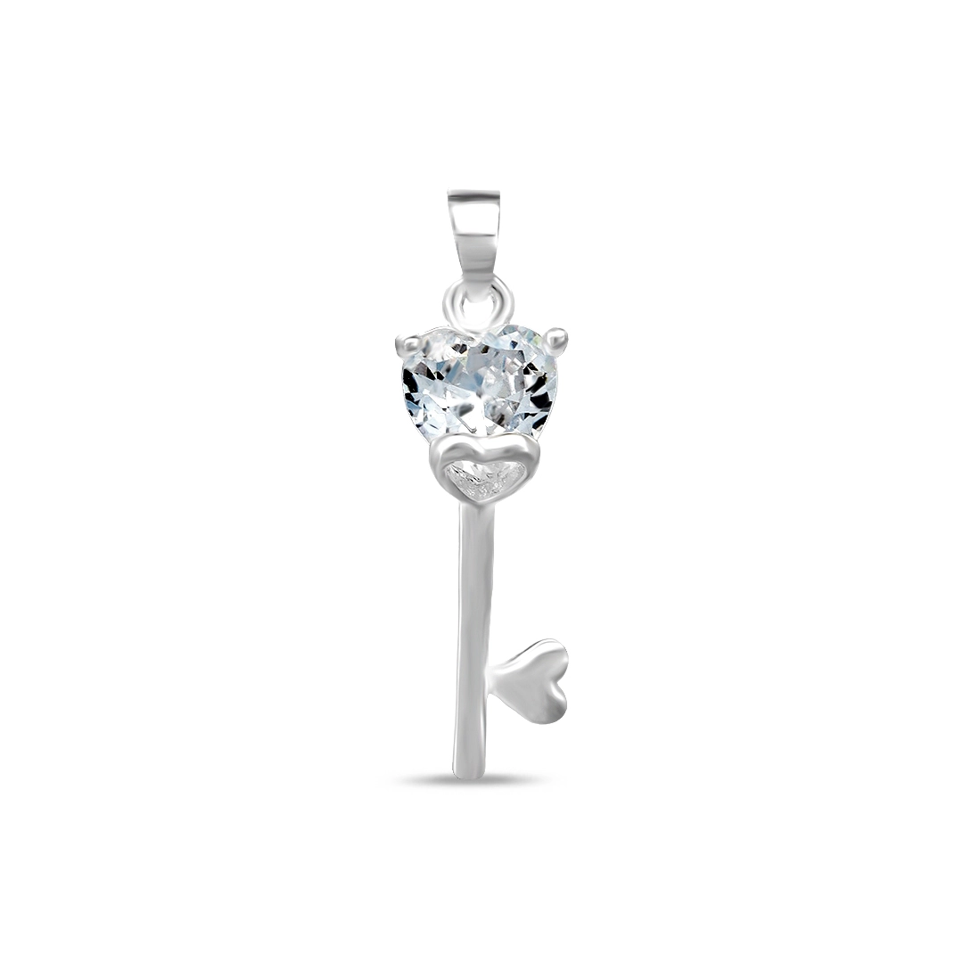 Pingente de Prata Leve Chave com Coração de Zircônia Cristal