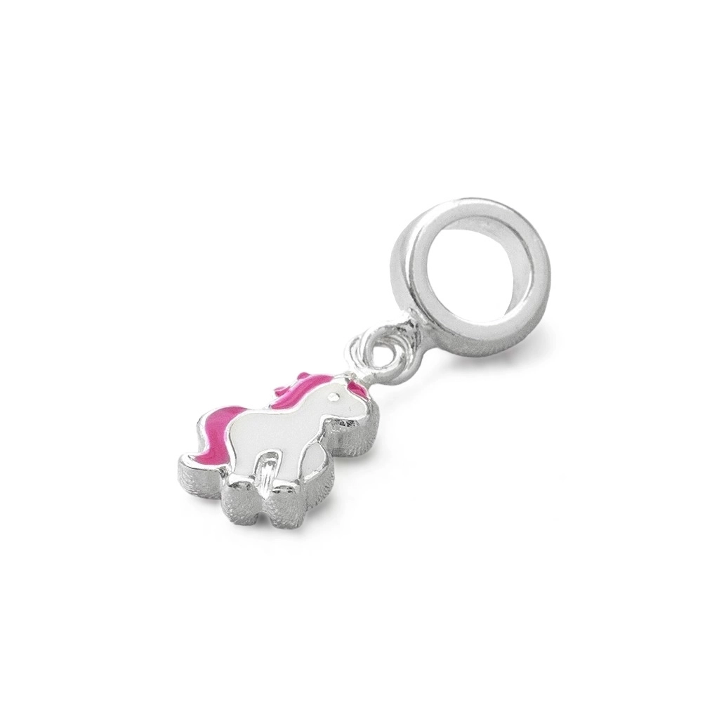 Berloque de Prata Leve Infantil Unicórnio Esmaltado Rosa e Branco