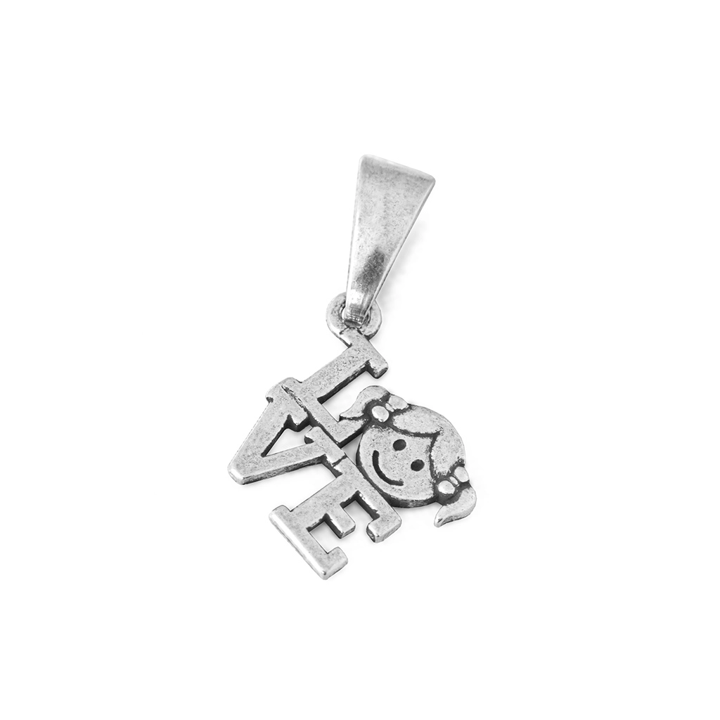 Pingente de Prata Love com Menina Envelhecida