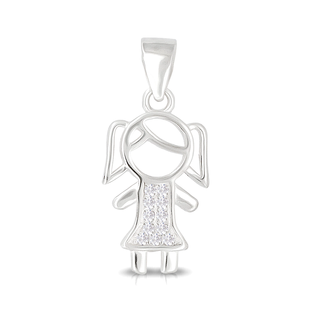 Pingente de Prata Menina Com Zircônias Cristal Cravejadas
