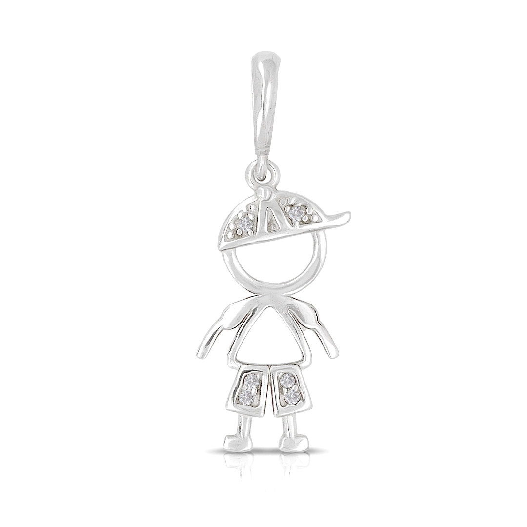 Pingente de Prata Menino Vazado com Zircônias Cristal