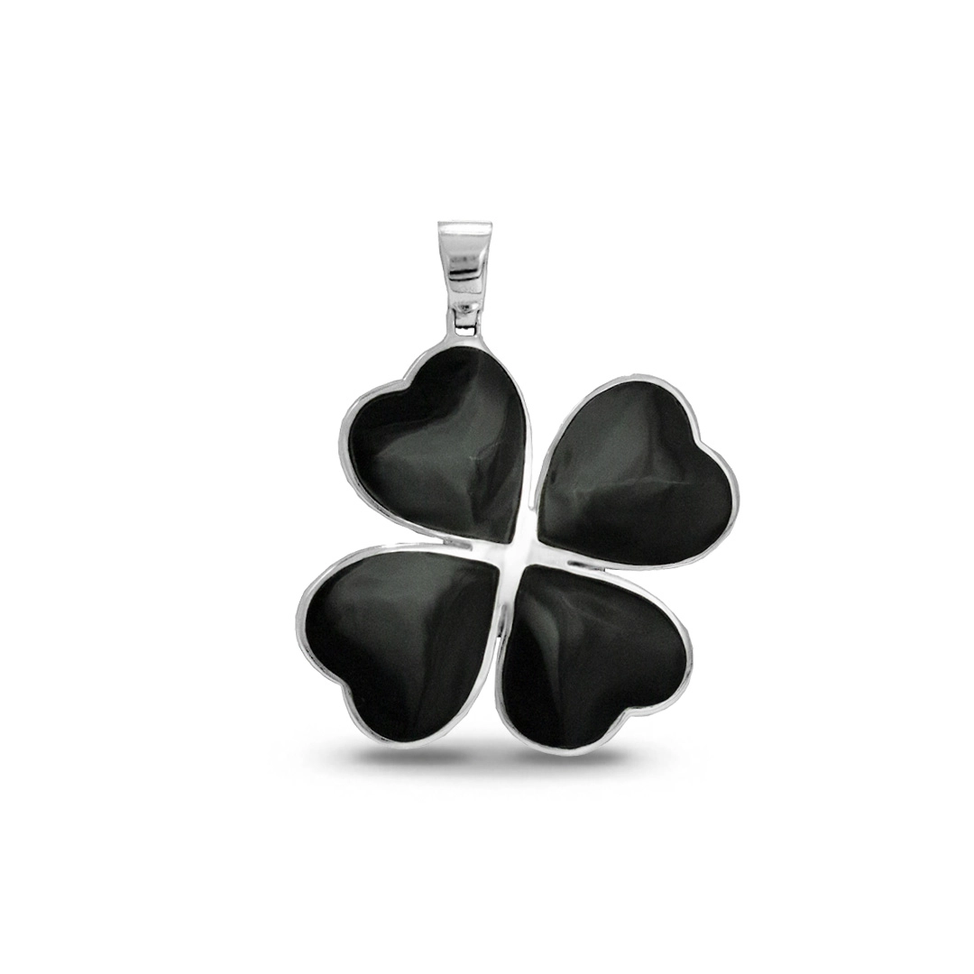 Pingente De Prata Trevo Com Resina Ônix