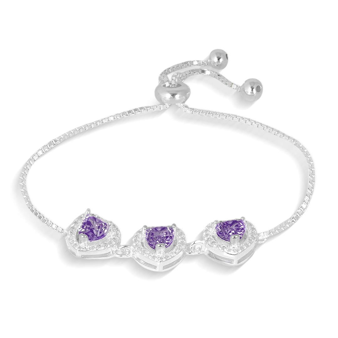 Pulseira de Prata Blend Collection Com Três Corações em Zircônias Ametista