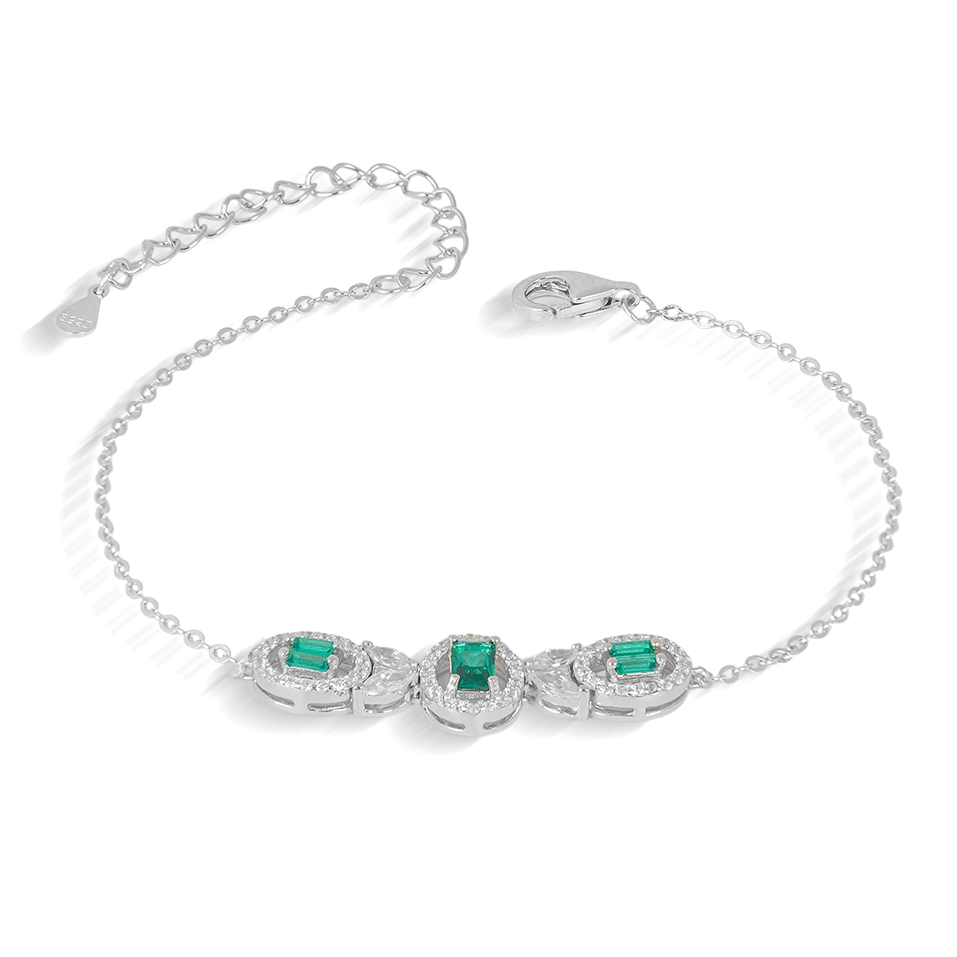 Pulseira de Prata Blend Collection Com Zircônias Esmeralda e Cristal Oval