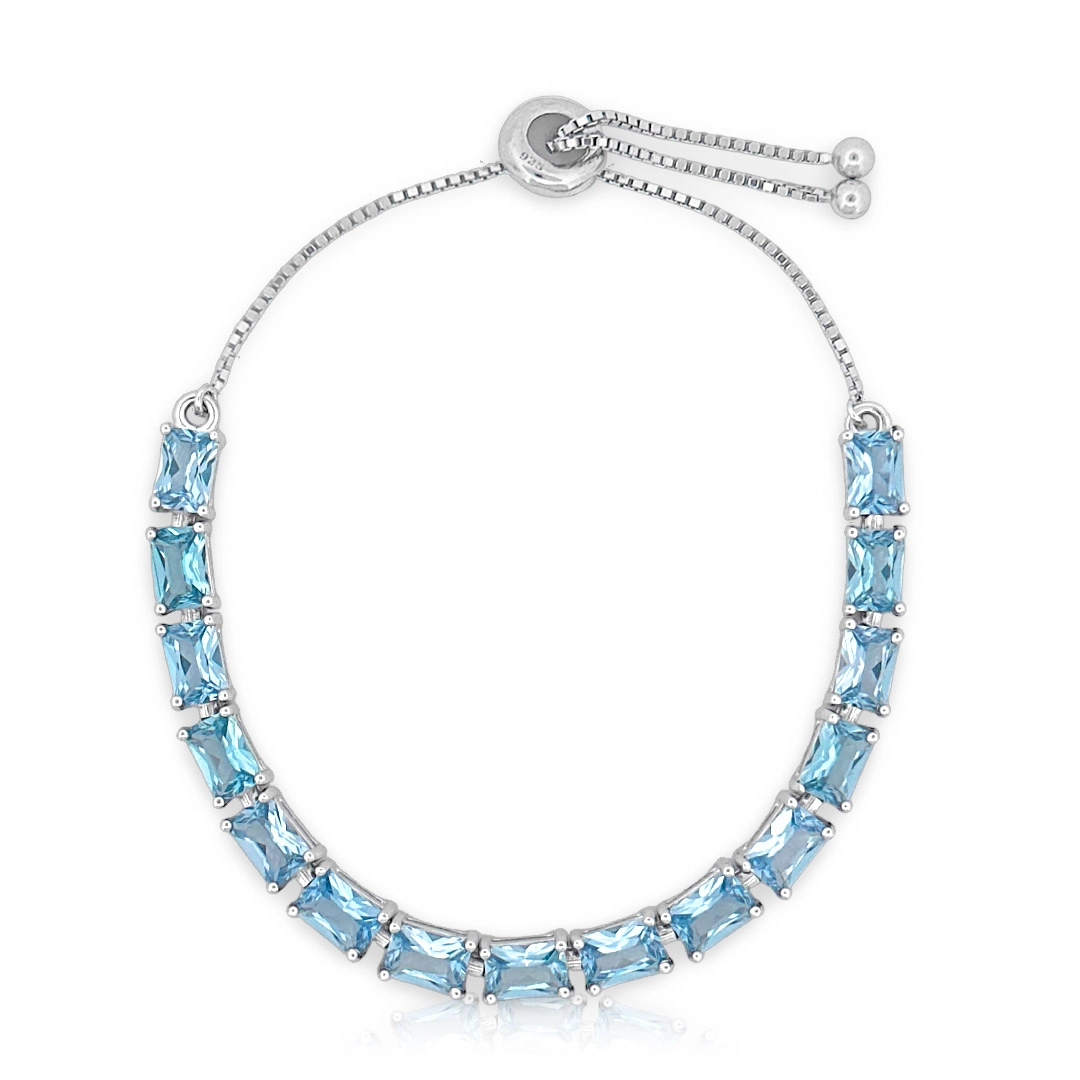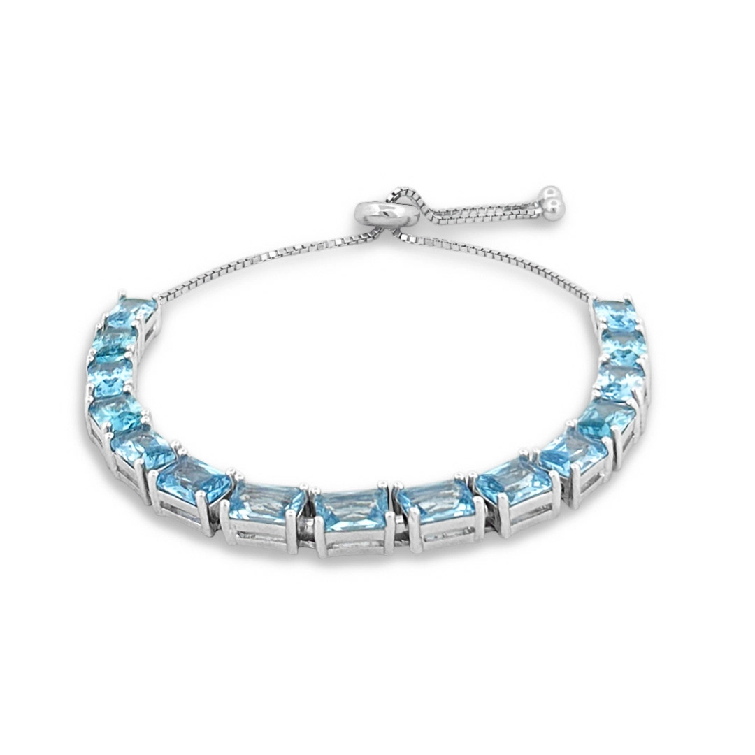Pulseira em malha veneziana com zircônias topázio em formato retangular e fecho regulável.