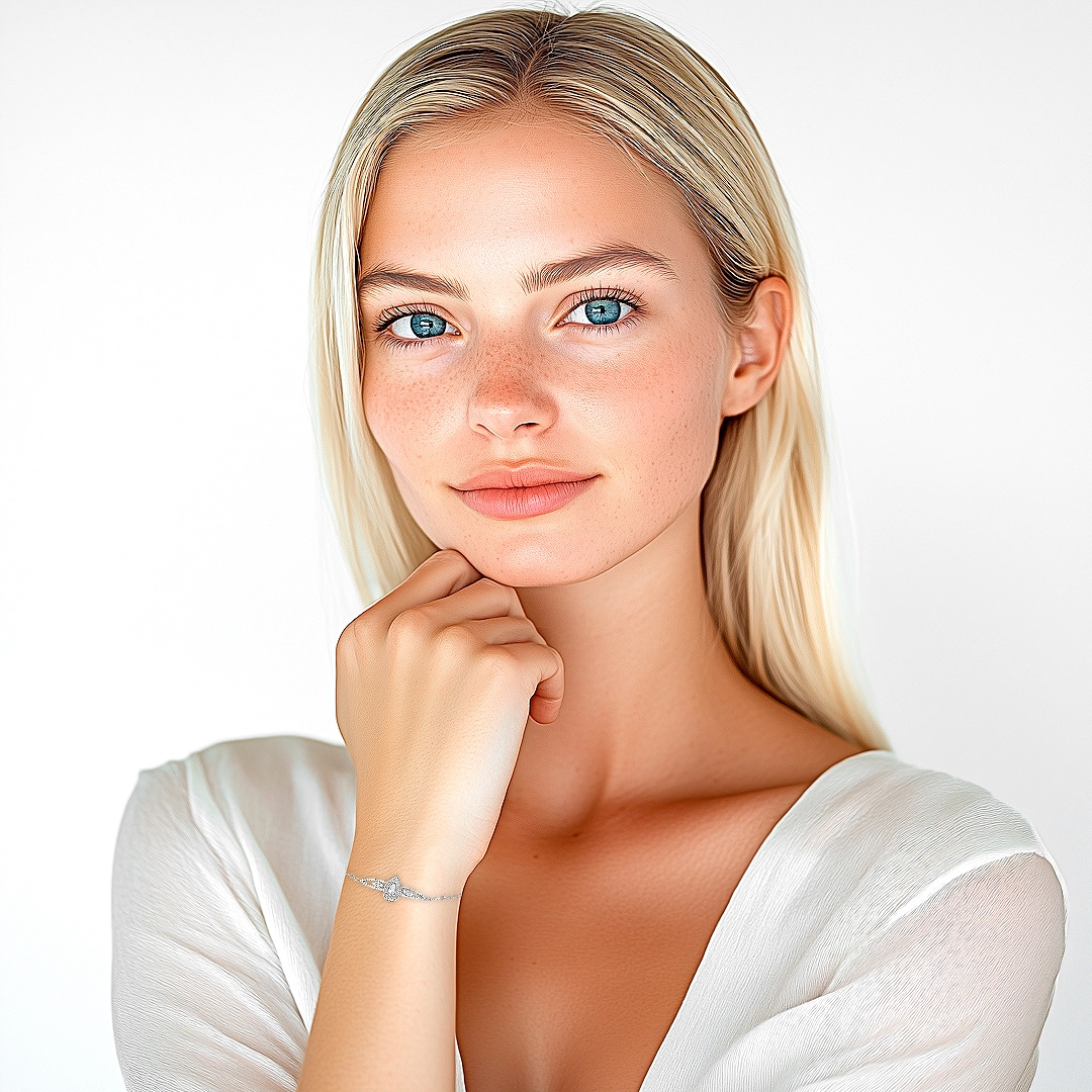 Pulseira delicada com malha de elos iguais trabalhada com zircônia cristal em formato gota.