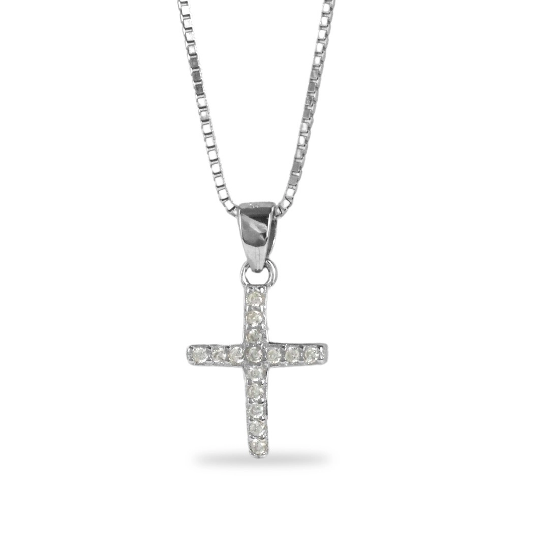 Gargantilha de Prata Cruz com Zircônia Cristal
