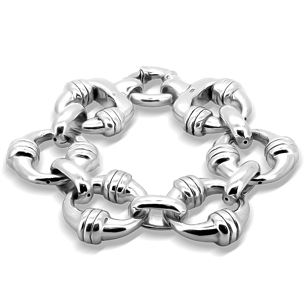 Pulseira com elos trabalhados.