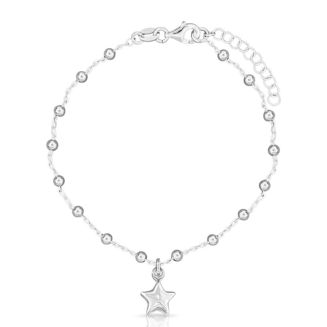Pulseira de elos iguais com esferas e pingente de estrela.