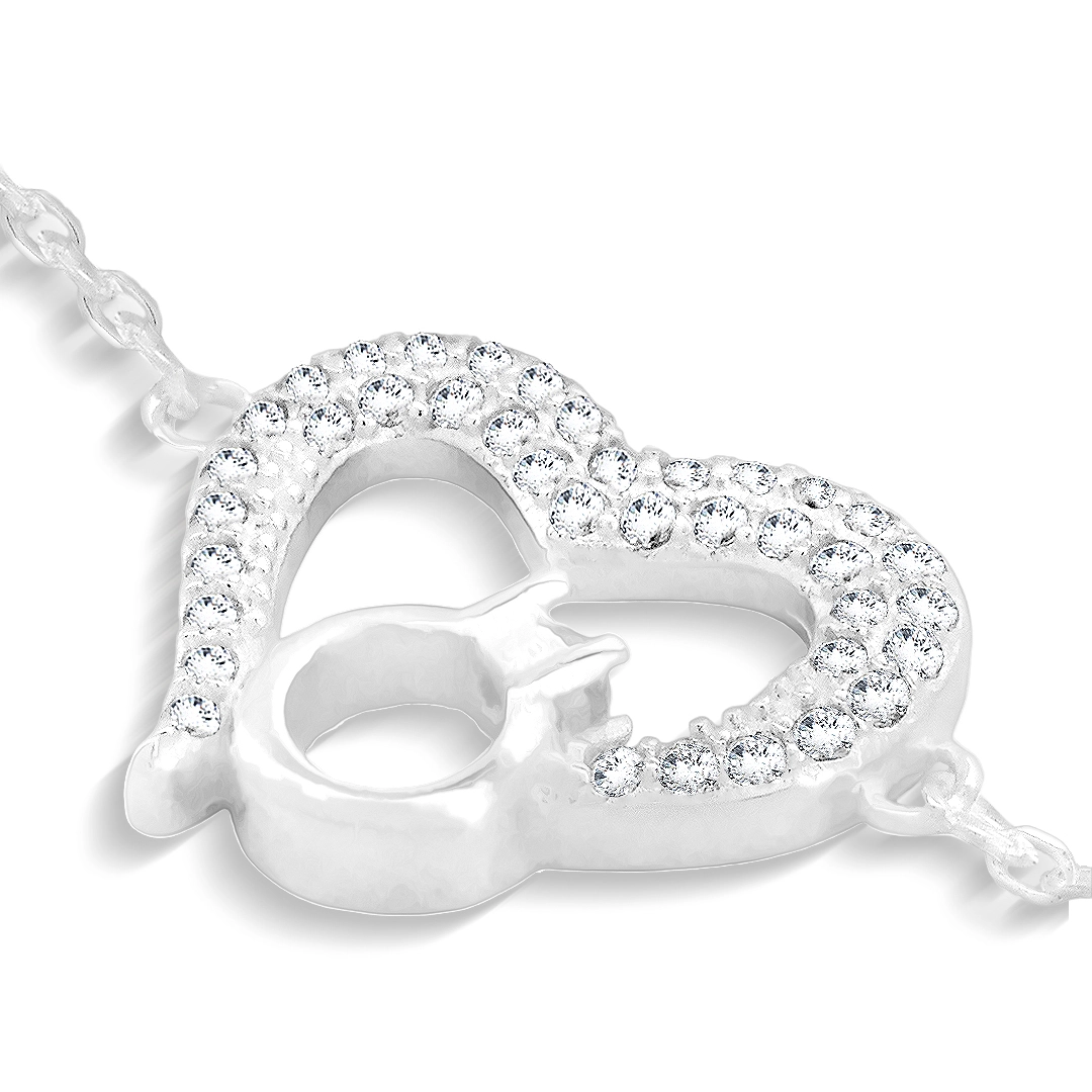 Pulseira de Prata Coração com Anel e Zircônias Cristal