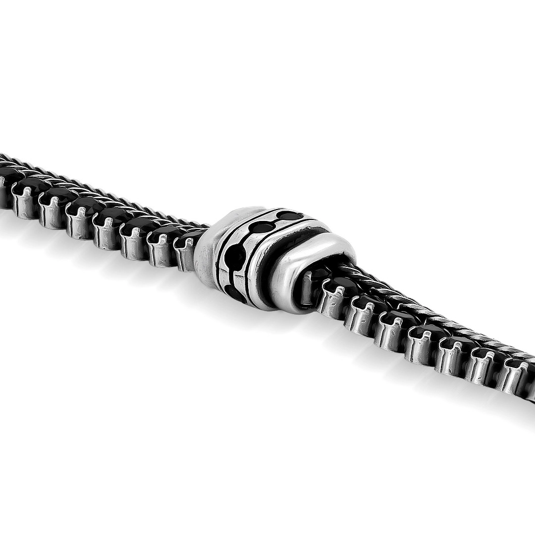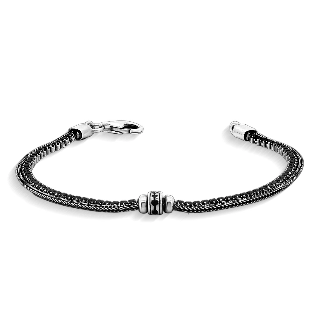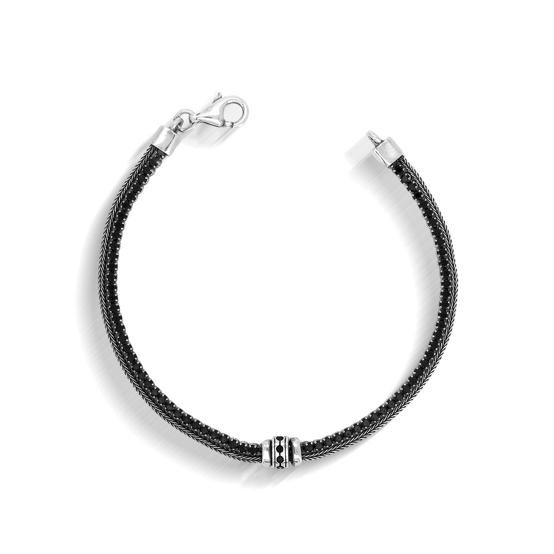 Pulseira de Prata Dupla Envelhecida com Zircônias Ônix