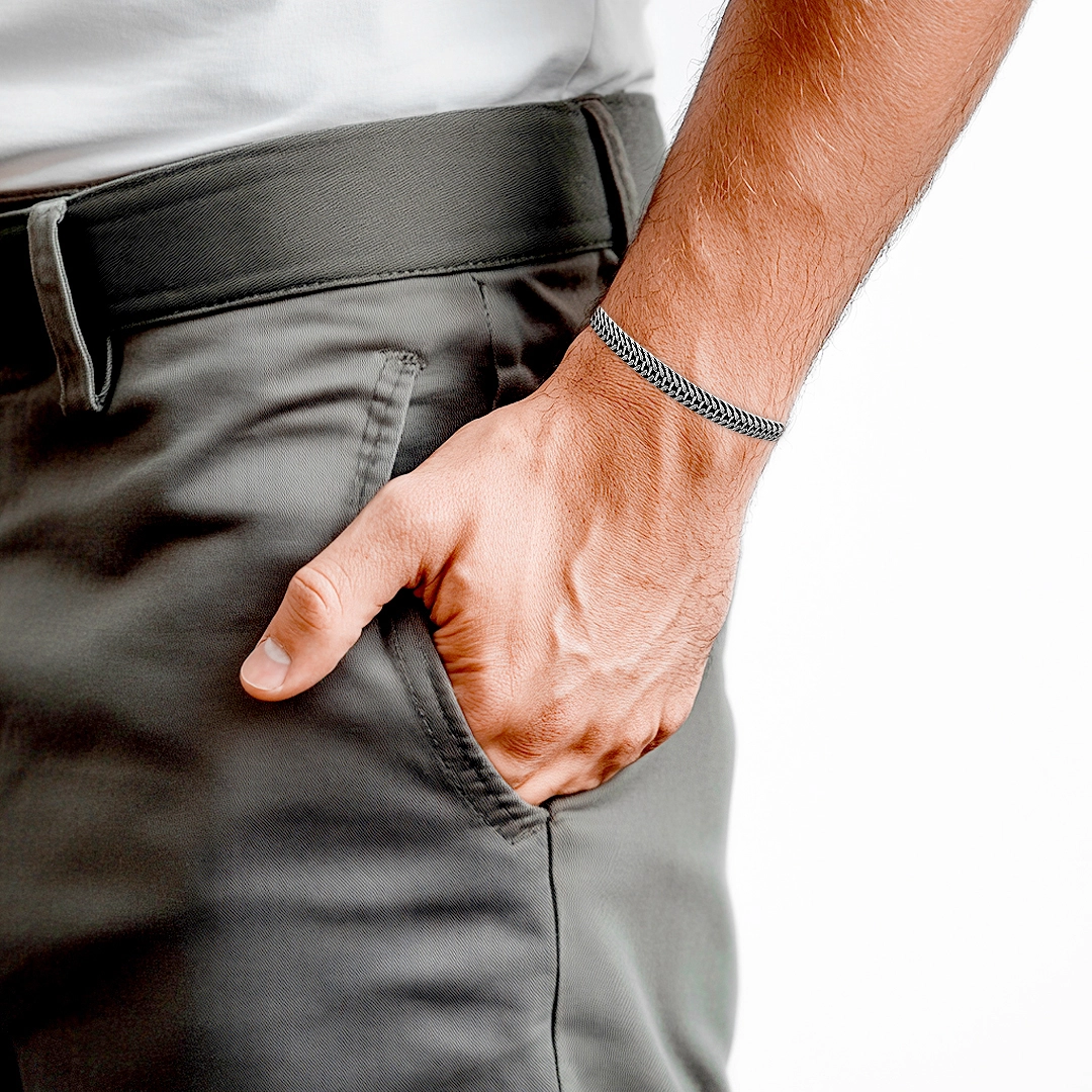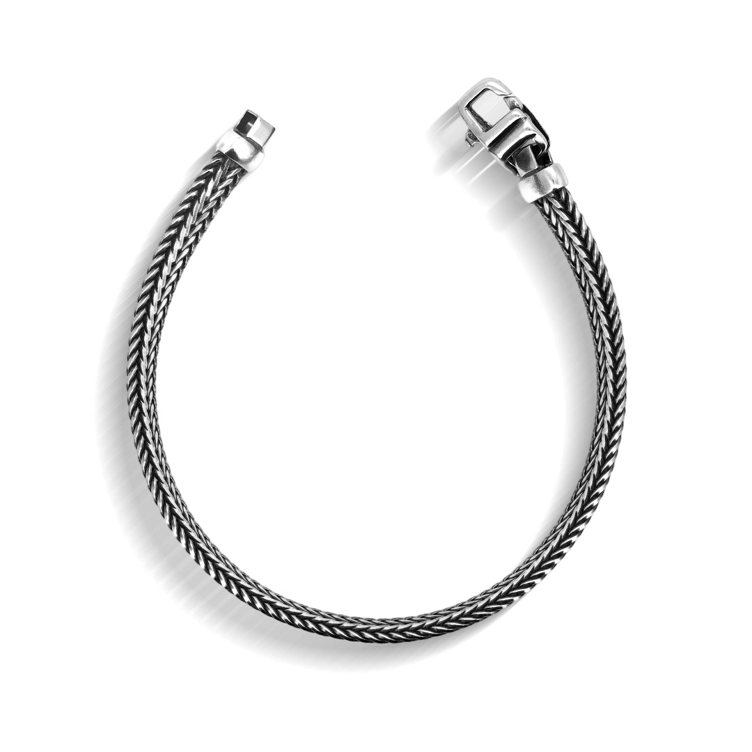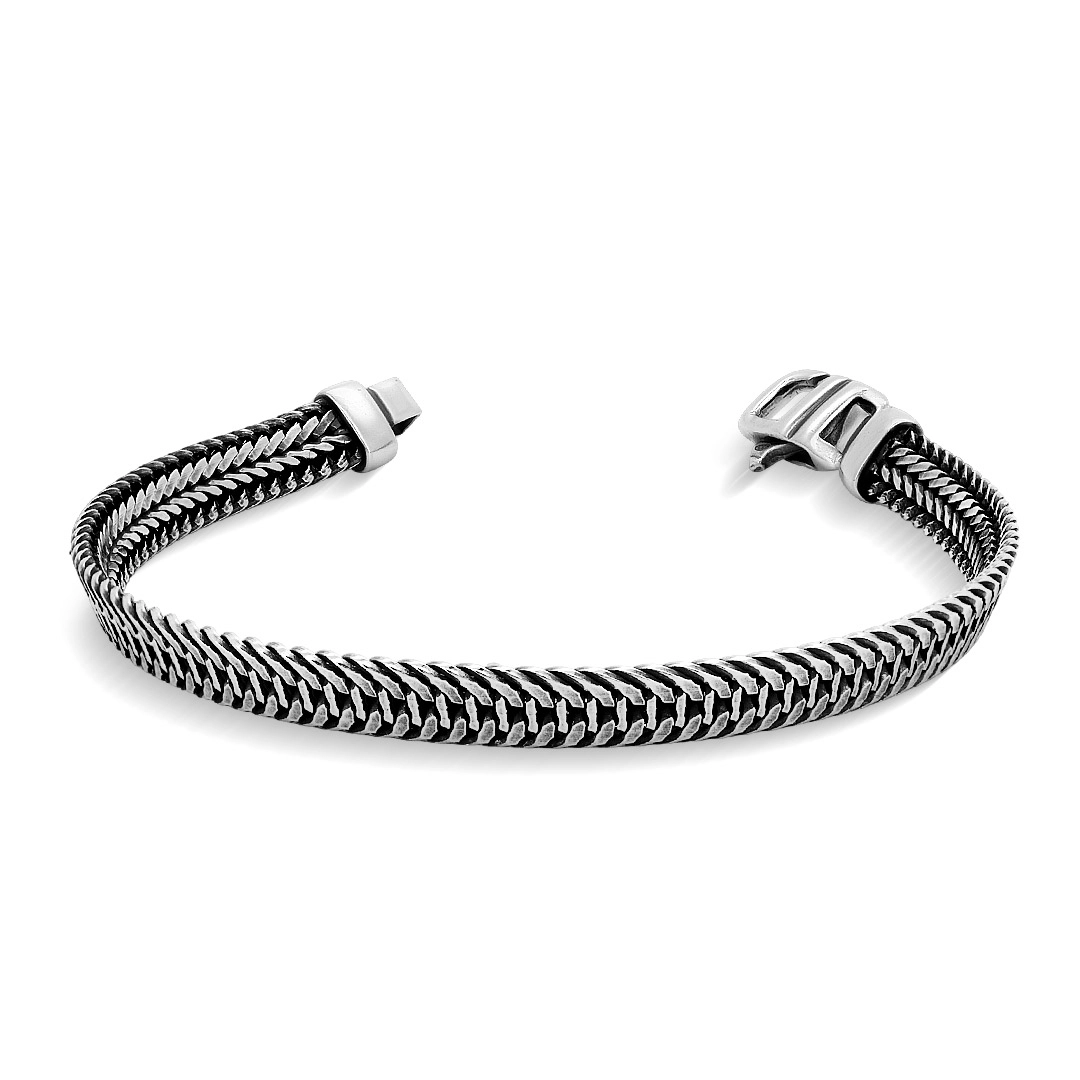 Pulseira de Prata Envelhecida Trabalhada com Zircônias Ônix