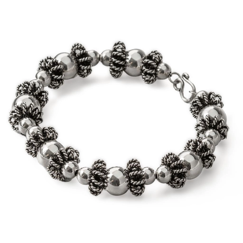 Pulseira de bolas espelhadas pequenas e grandes com trabalhado envelhecido.