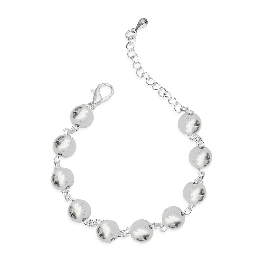 Pulseira de Prata Leve com Esferas Espelhadas