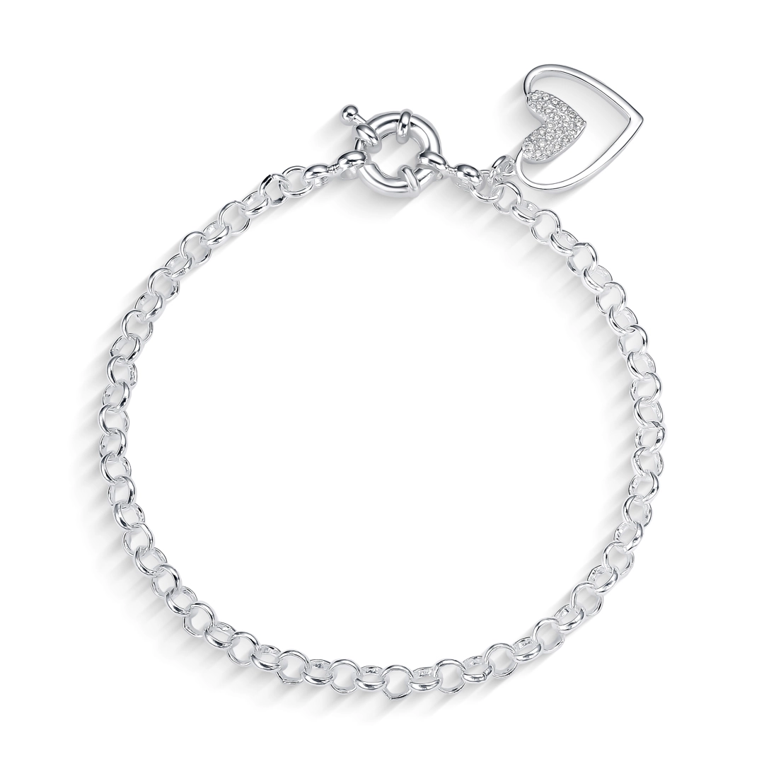 Pulseira De Prata Leve em Malha Portuguesa com Coração