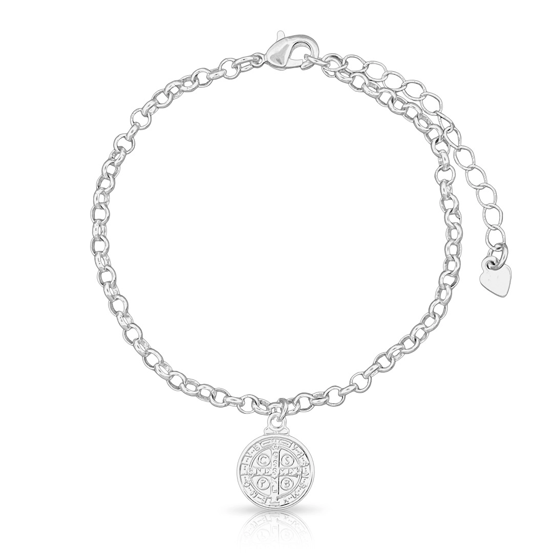 Pulseira de Prata Leve em Malha Portuguesa com São Bento