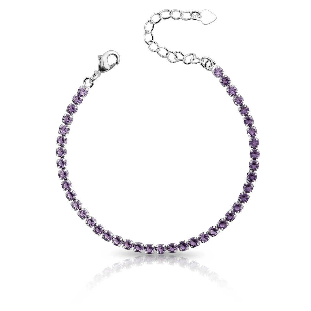 Pulseira de Prata Leve Riviéra com Zircônia Ametista Redonda