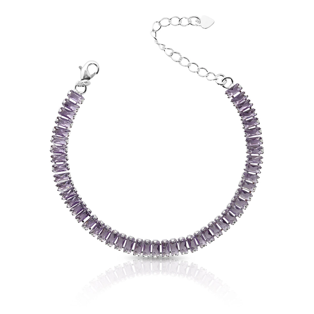 Pulseira de Prata Leve Riviéra com Zircônia Ametista Retangular