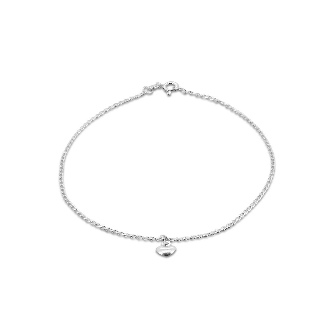 Tornozeleira de Prata com Elos Iguais e Berloque de Coração