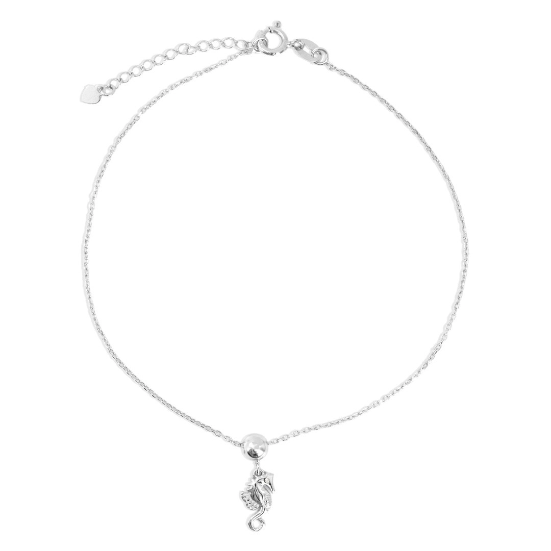 Tornozeleira de Prata com Elos Ovais e Berloque de Cavalo Marinho