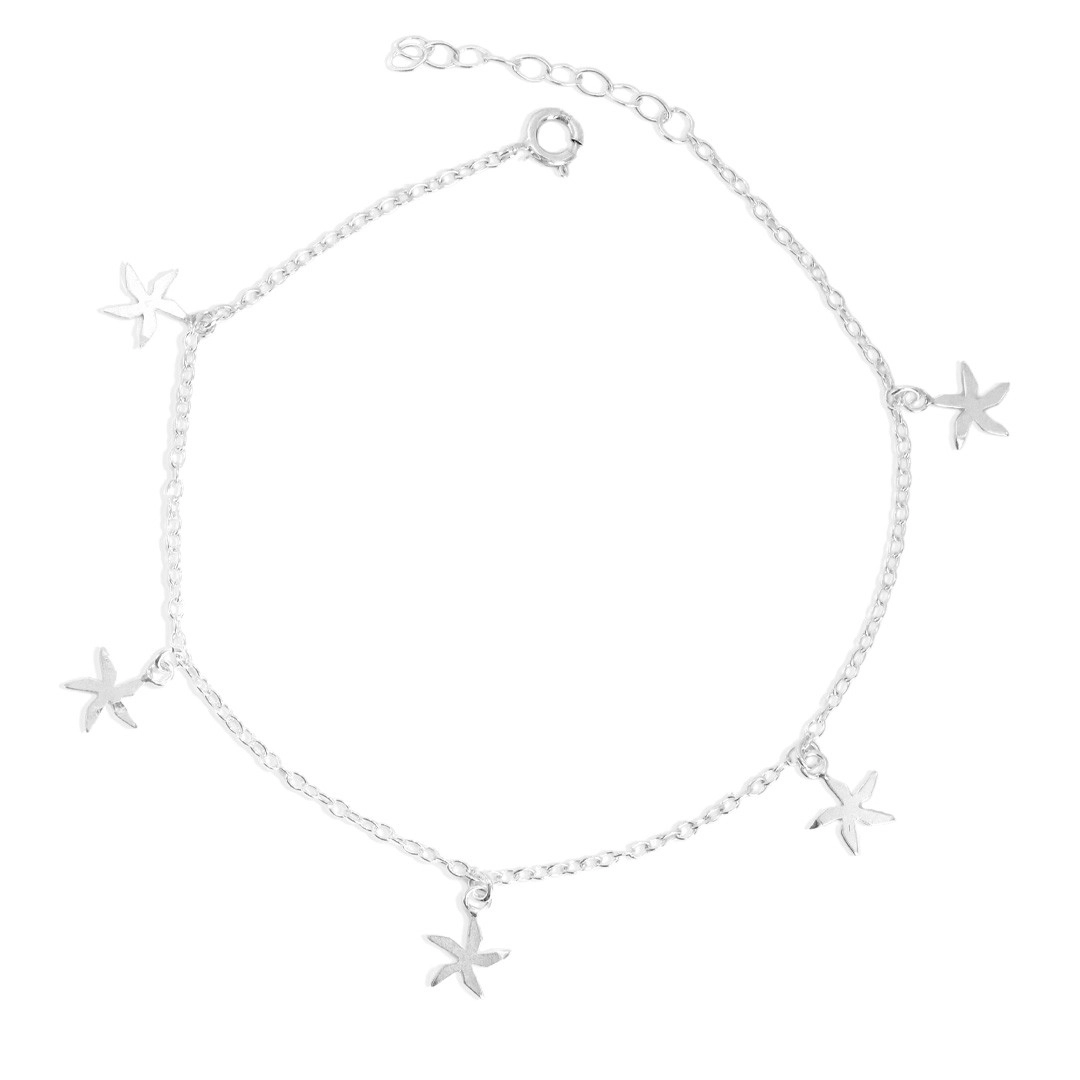 Tornozeleira de Prata com Elos Ovais e Berloques com Estrela Estilizada