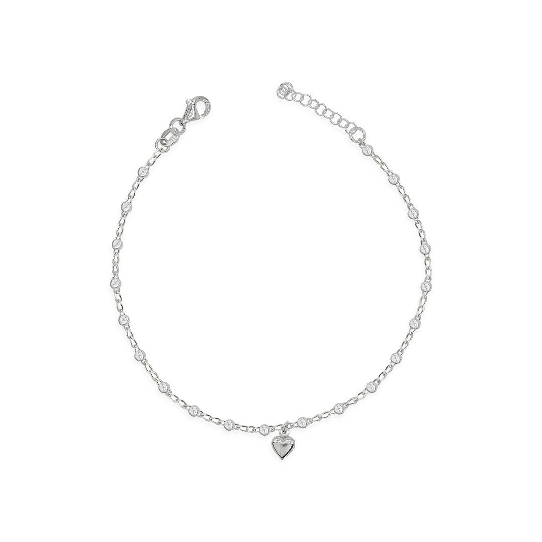 Tornozeleira de Prata com Esferas e Coração Espelhado